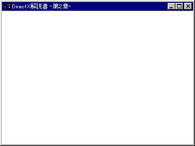 真っ白な画面が表示されました。今回のプログラムはここで終わりですが、次回はこの画面にBMP画像を表示させて、簡単なイメージビューワーを作ってみましょう。まとめ ・DirectXは簡単だ(と信じ込む) ・人のプログラムを見て勉強する ・プログラムの実行はプロジェクトの作成から ファイル