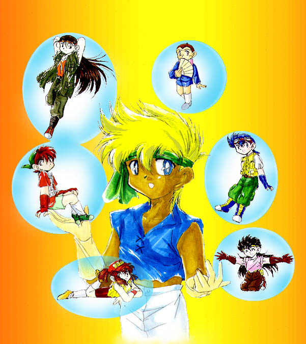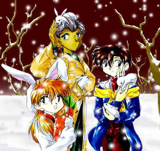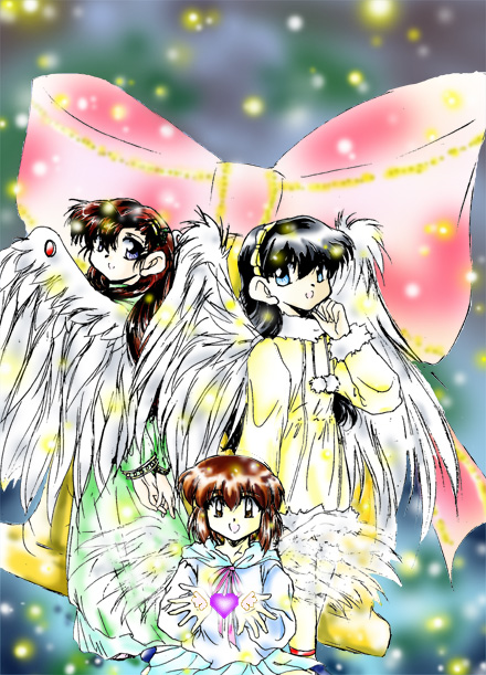 七枚目のトップイラスト、2000年のクリスマスを祝うために描いたものな ので、期間が過ぎちゃった今ここに移動しました!1999年のあの28人もい るクリスマスお祝いイラストに比べたら、今回は本当に楽になってました ね......それに女の子を画くのがやっぱり楽しいですvv 多分もう説明し なきゃ誰を描いてるのが分からないくらいオリジナルっぽくなってまし たね...特に髪を下ろすだけで妙に気品があるミナミ...でもジュンはやっぱ りちょっと不満...これも前に言った自分の石原氏化の問題でしょうか? だって私にとってやっぱり丸目の方が描き易いもん...背景には結構力入 れましたよ!頑張ってやっとクリスマス気分に見えるように描きましたvv |