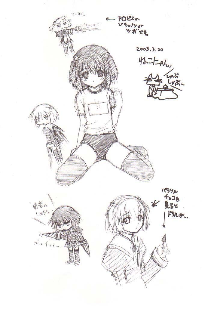 ■今日はうちに相方がやってきました とりあえず誕生日プレゼントにCレボカタログをプレゼント。お金無いからねぇ そして、いっしょに朱TG ver.をプレイ! アラミスって吉村茜さん(だっけ?)じゃん! 少し、朱の好感度アップ! 次にチュチュがでて愕然… まんまポンコツじゃん! 少し好感度が下がったり(変わり映えしないから)ファウは山田さんですか そして、宿屋のミルアさん、通称アルミさん(勝手に)に驚愕の事実が!? ![]() こっちから見て、右と左では肩の下の部分の色が違う! 製品版では直ってますよね? それともコレが正解? 相方がオミヤゲに『マリみて』を貸してくれました。読むぞぉ〜 ■今日から『今日のTOPニュース』は特に無い時は入れないことにしました iアニメイトにも『今日のTOPニュース』ってあったし… ■成恵の世界 なんか頬の赤らむ過程がトトロっぽい。それにしても設定が寒い 少なくとも私は、意味不明生物がいきなり現れて それを金属バットで吹っ飛ばすような危険人物に惚れはしません 30分見た感想:アニメになるのも頷けるような気がしないでもない。今風ってカンジね まだ、見れそう。それよりもワンダバに惹かれる 邑子さんの感想:一番、出番少なそうなキャラじゃん… それにしても、あの坊主、高1の時の同級生に似てる Triumphal Records. 虎で裏ROSS再販 いちひめ 重要なお知らせ。メル鯖が氏んだんだってさ Leaf FC情報、関連アイテム 更新。サントラキター AQUAPLUS 『こみパ』『東鳩』製品紹介 ALICE SOFT 『シェル・クレイル』更新 Infomation内に配布フリー宣言の概要が D.O. くらきの部屋 更新 elf TOPに河原崎2のキャラ一覧が! 他はいつもどーりでーす Nitroplus 『デモンベイン』更新 Tactics イッツモドーリデース Waffle ひみつの開発室 更新。企画倒れの小冊子から XUSE イベント情報 更新 すたじおみりす 『月陽炎 DVD Edition』パケ絵 公開 戯画 Event、裏部屋、リポD 更新 「キャラクターカーニバル2003」が4月29日に東京ビッグサイトで開催! レボのついでってカンジ? blue eyes 『エンゼル・コア 下巻』更新 シリーズの最終作にて集大成!『ファイヤープロレスリングZ』は6/5発売 (名前のない部屋 様) え!? 終わんの!? 速報! ジェリーフィッシュ最新作『LOVERS』発売日決定!! 延期御三家(勝手に作った)も終わりか 村田蓮爾氏デザイン作品が現実に青山に出現!? 見てぇなぁ 「G-taste」イラスト展 開催 八神センセの描くロリキャラはリアルにエロイ R・クロウ挙式で泣き崩れたM・ライアン メグ・ライアン…女優としてだけでなく女性としてもイイ |