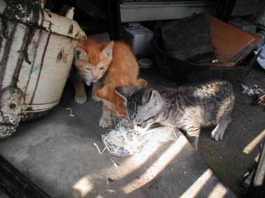 ■今日も今日で大変でした<挨拶 合否の通知が遅くて家に缶詰でガックリ 待ってる間、部屋の模様替えと題して、ベットを取って小学校の時使ってた机を入れました 机に関しては、ちゃんとしたデスクを買うまでの代わりです これで、物書きもできます(御膳じゃ、やる気が起きなくて) で、あまりにも電話が遅いから猫に会いに逝って 知人(般)に会って、引きずりまわされたあげく「眠いから解散」とか言われて 途中で高校のクラスメイトとすれちがって(名前忘れたから話かけずに) 家に帰ったらMYちゃんが逃げててガックリ で、現在バイト通知は来ず(午後8時)、遅くなるかもって9時越す気かよ! ■今日のニャンコ ![]() 独り占め〜♪ ![]() (一人称)にもよこせ〜 お母さんの前に置いたのに、子猫達だけが食べてお母さんは食べてくれませんでした まだ、威嚇しやがりますからね「フゥゥゥーーー!!!」 で、食べてる途中でアメショーも入ってきたけど、なんと1匹に爪を立てて阻止しやがります 被害猫は悲鳴をあげてたし(しかも、両目が潰れてるやつに) で、今日わかったことはアメショーとトラの片方はメス♀だということ ■ホントに『ツバサ』つまんねぇ なんか線が太い上に、トーンが背景エフェクト以外に使われないから見ずらい トーン使わないで見やすいのなんてドラゴンボール以外、見たことないです(古い作品は論外) まぁ、超サイヤ人3で初めてトーンが使われてましたけどね ちぃの立ち位置が意味わからん ■『8mile』がちょっと気になる 別にエミネムには興味ないけど(つか、知らなかったし) アカデミー賞取った主題歌イイしな〜 ■ステルヴィア OPであぼーんワラタ 相変わらず、しーぽん親子のやりとりはウザイわけで つか、根に持ちすぎだから。ただの根暗じゃん。つかヲタク? PCカタカタみたいな そして、そんなしーぽん@ヲタクは精神面が情緒不安なのに選ばれたのがおかしいと思う 精神面が危ういのなんて最初からわかってることなのによ! そんな香具師に存亡を賭けるなんてラリってんのか? ここの香具師らは んでもって手紙展開ウザ! 字汚ねぇし 息継ぎ無しレベルでしゃべり続けた音山萎え。間を持たせろ ■テクノライズ 初めて見たけどOPカッコよすぎね。ちょっとMADぽいけど 話も暗くてグッドだね。久しぶりに血が出るアニメ見た気がする(ナルトは中途半端) マッドハウスいい仕事するなぁ ■D.N.Angel 最後だけ見たけど、なんじゃありゃ。おもろいのか? コレ つか、青野さんの次回予告渋すぎだから。この作品にはもったいない だからファイナルファイトの1面のボスとか出そうよ「ウエェハーッハッハ」みたいな あとはロックマンXからゼロ出しちゃおう! 8頭身のゼロ萌え SNKサイドはイイね、キム先生にコング牙神なんて素敵すぎ なんてったって、カプエスのキム先生は使いづらかったからねぇ …で、ホア・ジャイは? ●To Heart2 PS2で発売決定 (いろんなとこ) 東西合同作キタ━━━━(゚∀゚)━━━━!!!! シナリオはねがぽじな人がキーポイントかな? 絵&音はパーフェクトでしょう 個人的には別にノベル形式にこだわらなくてイイと思う。ギャルゲーだし そこにこだわるなら他の細かい点を無駄なくらいにやってほしい。ミニゲームとかね あとは、東鳩とのリンクですな、あの話から数年後の学校の話ならそれらしく 例えば、セリオ化の未来の話ならセリオとの接近 そこで馬ヅラがマルチをまた投入してもイイし 個人的には誰ともENDしなかった浩之の大学生の話とかがいイイけど、絶対無理だし 新たな主人公だったら浩之とは全然違う性格にしないと同級生1&2と変わらないし だからといって、電波な長瀬ちゃんみたいな暗い子入れたらハートフル(略)じゃなくなるし ヒロインはとりあえずどうでもいい、どれだけ魅力的な主人公を作れるかだ とりあえず、次の会報誌待ちかな? ●TYPE-MOON:INFORMATION 更新 ●「真月譚月姫」公式ホームページ:サイトオープン 格闘シーンが楽しけりゃ嬉しい、萎える演出だったら… ●渡辺製作所:雑記更新 ネロ様は6/13以降だって ●EVE ONLINE:OPムービー公開 48MBはキツイっす。ナロー用をくれぇ ●GROOVER:DLに壁紙 公開、スタッフ日記 更新 ●D.O.:『あにげぷち』参加告知アップ ●天網恢々:TOPでアニぱらキャプ ●エアマスター格闘『バーチャルファイティンガー』 製作ページ:トレーニングモードを更新 ●ロットアップ情報:『可奈の郵便屋さん』など全15本 ●裕美神社:いちご狩りツアーのおみやげプレセント ●feel:リンク更新 ●yozuca [yozuca HomePage]:リンク更新 ●「成恵の世界」DVDオーディオコメンタリー収録 邑子さんを出して欲しいけど、成恵は欲しくない。ものすごい葛藤 ●“デジタルワークス毎月何かが当たるキャンペーン”近日実施 ようやく姐さんのサインが! ●ガンダムがドコモ505iでより迫力ある画面に! すげぇとしか ●秋葉原メイド喫茶特集、ついに始動! 詳しくないから参考にしまつ ●SARS感染源はやっぱりハクビシン ハクビシンかわえぇなぁ ●ふざけるな! 消費税0