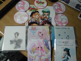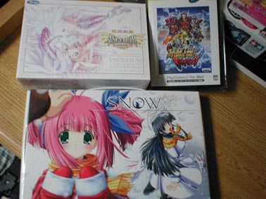 7時半に寝て18時に起きた、見事な逆転劇 明日のバイトが目に見えます、はぁ 【 コミケ2日目 】 例年と違い、雨が降っていたので始発は止めて10時前に着くようにした今回のコミケ やはり数時間の差は大きく、いつも並んでる西側の場所よりもずっと後ろについていました まぁ、並んでるところは省略いたしまして、いざ入館ですよ、奥さん とりあえず、通販をミスった時点でやる気がなくなったのでねこねこはスルー。グッバイねこねこ 確か周った順番は、エンターブレイン→ソフトバンク→NECインターチャネル→PajamasSoft→GROOVER 企業周りは最後のGROOVER&グリグリブースで終わって、その後はずっとGROOVERに張り付いていました 川原誠サイン会に並んだり、グリグリのトークショーを聞いたり、キス講習会を聞いたり 体験版を貰ったりしてました。常駐しないって書いたわりにはずっといました。気分屋ですから ゲルググさんのサイン会ですけども、Kissing!!下敷きを買った人には下敷きに それ以外の方にはKissing!!コースターの裏にサインしてもらえたわけですが あ、ちなみに下敷きを買ったらコースター全4種類がもらえました 相方が「やれ! やれ! やりやがれ!」とかほざきだしたので仕方なく ![]() 『葉月さんへ』と入れてもらいました。相当恥ずかしかったです 書いてくれてありがとうゲルググさん、もとい川原誠さん! そんなカンジで、トークショーでは一成さんのはっちゃけ下ネタトークや 鈴木麻里子さんの「はさんじゃうぞ〜」藤巻さんの「お注射ぶっちゅ〜」などを生で聞けて万歳かと まぁ、それ以前に鈴木麻里子さんを生で見れたことが嬉しかったわけで ほら一応、ボクはセンチスキーですし。北の大地で沢渡っつったら、ほのかなわけで センチスキーがこのトークショーに参加しないわけないでしょう? してない香具師は罰する! それにしても、バッチグーに一言物申すにボクも参加すればよかったかな? 紙に書いてそれを入れた箱から抽選する方式なんですけども、一言『乳』とだけでも書けばよかった キス講習会ではbambooさんの演出にたいする並々ならぬ思いが聞けてよかったです というよりも、ほとんどボクが思ってることと同じことをbambooさんも考えてたことに感動です 相方と検討した結果『Kissing!!』を買う! という結論に達しました。お布施じゃねぇ 少しでも貢献して暴れ祭りをやってほしいのです。生K・I・S・Sが聴きたいのです そしてbambooさんの演出具合をこの目で見届けたいのです。とっておきも気になるし! ボクがブースのデモを見た限りでは、しっかりと雨が降ってる演出がされてましたネ イベントCGになった瞬間止まりましたが。できないもんなんですかねぇ? とりあえず絵は嫌いじゃないですしサインもらいましたし、演出は大丈夫そうだし、音も大丈夫でしょう 声も一成さんに似た人が「ハゲじゃねぇ!」とか言ってましたし、双子が双子なので大丈夫そうです だけども、あぁ、だけども、テキストにかなりの不安がありますよ。デモを見てただけでも厳しいです (あの乳揉みCGでの)予想通りDQNなカンジで他の部分もDQNなカンジで心配です とりあえず買いますけどネ。最終的にサンタ屋ってのがしっかりと生かせていればイイです、ええ 一応、体験版 ![]() 体験版の中にあるイルマの雨の中の修羅場シーンでの声優さんの演技が 真に迫っていてイイカンジですよ? 相方がリアルで怖いって言ってましたし そんじゃまぁ、2日目で手に入れたブツでも ![]() エンターブレインブースで手に入れたブツ ・本気球:500円 ・よせがき:500円 ・SHUFFLEプレミアムブック:500円 ・SNOWセット:2500円 ソフトバンクブースで手に入れたブツ ・KEY+LIA『Spica / Hanabi / Moon』:1500円 PajamasSoftブースで手に入れたブツ ・Please teach! My Angel ビジュアルブック:500円 ・Please teach! My Angel『空への路』 :1500円 GROOVERブースで手に入れたブツ Kissing!!特製下敷き:500円 あと、写真にはないけどインチャネでもらったSNOWポスターなんかもあります ホントはインチャネでSNOW手ぬぐいも買おうと思ってたんだけど忘れてましたw コミケ後、ワゴン情報が前から入ってたので秋葉に行ったわけです 傘とか無くしてヘコみましたけども、かなりの買い物ができました ![]() ・れすとあ:1980円 ・EVE ZERO:980円 ・Re-leaf:980円 あと、ちぇりーそふとの『恋してナイチンゲール』のミニガイドブックと体験版です あぁ、れすとあといっしょに売ってたZyXの『憑き』も欲しかったッス あと、他のシーズウェア絶品の『luv wave』とか『DIV DEAD』も欲しかった上に 『EVE ZERO』のCD版はディスク交換がめんどくさいからDVD版のほうが良かったんじゃんとかネ 27日にもう一回行くつもりだから、その時にシーズウェアのほうがあればいいな あぁ、ちなみに27日はボクの誕生日だからプレゼントとか待ってるよベイベー それにしても秋葉のSVCレベルがかなり低くなっててガッカリでした まさか普通に隠しキャラを使ってるとは思わなんだ。火星人はやめろ あとゲーニッツでヨノ