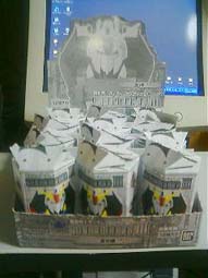 メルアドを変えました…ってかごめんなさい!!! このサイトのメルアドがHotmailだったことをすっかり忘れて 全然サインインしてなかったのでメールが消去されてしまってました もし、この数ヶ月間でメールを送って下さった方がいらっしゃいましたら お手数ですが、もう一度送ってくださいませ!!! すんませんでした! …時効メールが多そう(泣) さ〜て今週の食頑新商品はぁ〜?(あくまでも買ったモノだけだけど) ![]() ヒーローメカコレクションからマジンガーZ 【 ちなみにこれは別ver.のドリルミサイルver.です 】 ![]() パチスロ魂 黄金伝説から荒野のマンボウ&スーパーブラックジャック 【 ただ自分が欲しいが為に(もちろんブラックジャック)発注させました、ただマンボウが出たのは誤算でした 集中すればNT能力(食頑専用)が発動して欲しいモノが出るのに適当にとってしまったのです その証拠に2個目は集中して見事にブラックジャックを当てました! 】 ![]() ガンダムタクティクス3からノイエジール&キュベレイ 【 なぜかAバイトに行ったら発注に×が付いていました…何故に!? せっかく今週は棚一列使ってガンダム祭り(自己万足)をしようと思ったのに… しかも、コレだけじゃなく電動シャボン玉機(ピストル型)も「取ってくれ」って頼んだのに頼まないし(泣) 】 ![]() ガンダムヘッド3からフルコンプリート 【 Bバイトに入らないことがわかってたのでAで1ケース余分に発注させて、取り置きをしました ちなみに機種は、Z,ゼロカスタム,フリーダム,キュベレイ,ガブスレイ,ドムです 】 ![]() THE 大人買いの痕 【 フッ… 】 あとはSEEDのキャラフィギュアを大人買いですかねぇ 7月は特に買いたい物が少ないから、玩具でイキます |