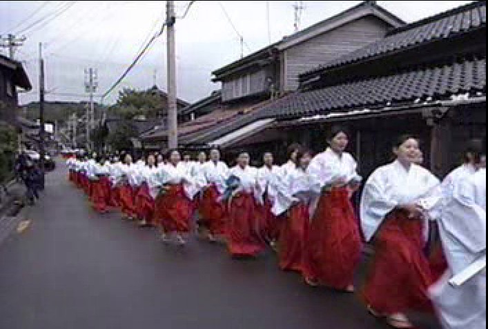1/20の深夜、ふとテレビをつけると画面に「120人の巫女」と出る。「・・・????」一瞬、意味がわからない。だが、コンマ何秒で、わずか7文字から結論をだす。「巫女」・・・萌え。「120人」・・・尋常ではない数。何の団体だ・・・。「120人の巫女」・・・画面一杯の巫女。巫女。巫女。萌えとか言う前に、異常な光景しか浮かばない・・・。偶然、パソコンもついてたので、とりあえず急いでキャプチャー開始。