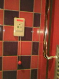 どんな場合に使うんでしょう・・・。 閉じ込められた? ドアが開かない? ちなみにドアは手動、前面は女性用トイレへの通路になっていて人通りはある場所です。 照明ボタンと間違えてしまいそう。 2005.12 |