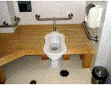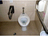 *1F・3F・4F・7Fにひとつ、5Fに2つ同じタイプ。6F(食堂があるフロア)だけは便器の周囲を板張りにしてある。