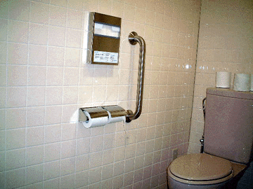 ■感想 鍵の取り付け位置が床から43cmととても低い位置にあり掛けにくいと思いました。 とても車椅子用トイレとは、いいにくいと感じました。