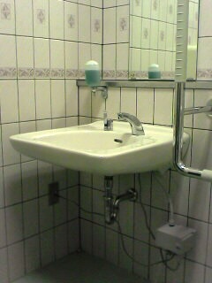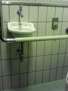 壁面設備 手洗い器、非常ボタン、 L字手すり:縦手すりはかなり遠い |