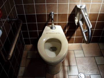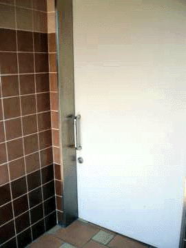 *イタリア村とポートビルに挟まれた位置にある公園。集いの広場の横にある大型トイレ。男女のブースが1箇所ずつあります。*屋外公園のトイレの典型で、頑丈な鉄扉は開閉が重くて大変。中は比較的きれいでした。