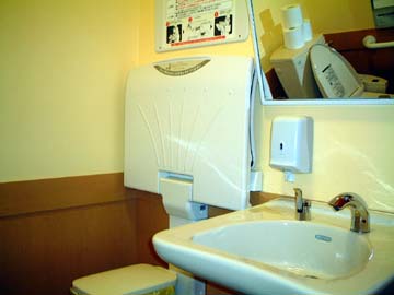 ペーパーホルダー洗面台横の手指乾燥器兼滅菌器。