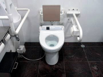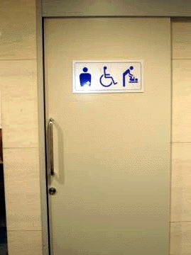 *各階に車椅子向きトイレがひとつはある。内側の扉に「とって」が2つあるのは使いやすい。