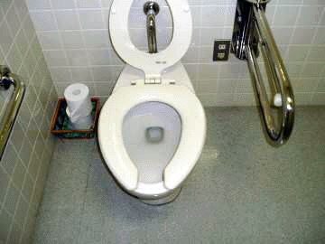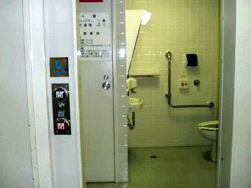 *有効面積が160cm×190cmしかないが、扉部のコーナーをうまく利用して入り口幅の90cmを確保している。フロア面積の割合には、一般のトイレの数も少ない。車椅子対応は4Fに一箇所ある。