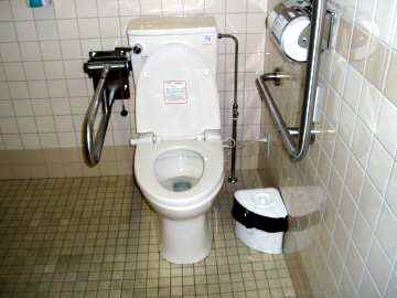 | 便器周り。壁側L手すり。 反対側可動手すり。 |