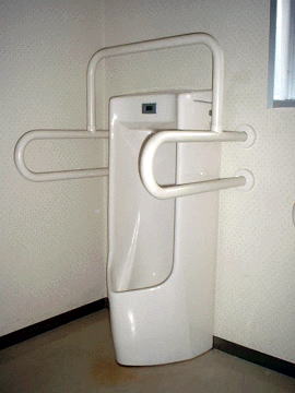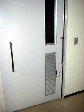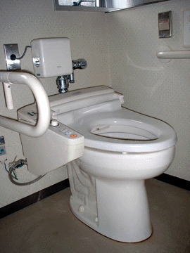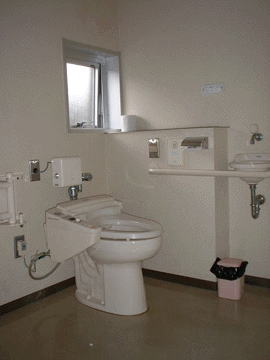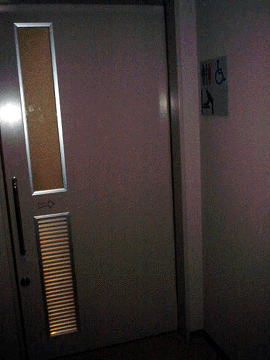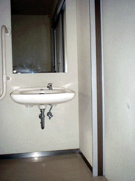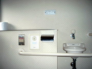| トイレドア外側 | 壁面設備 洗浄ボタン トイレットペーパー 非常ボタン 手洗い器 |