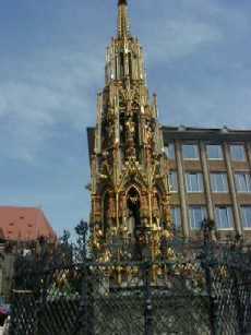 さっさと城を降りてきて中央広場の美しの泉を発見。多くの観光客が何やらごそごそ。