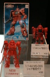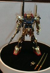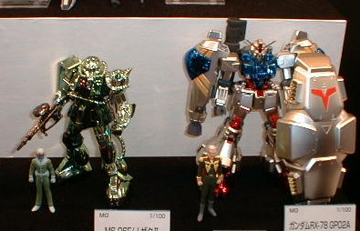 「ギンギラボディに目が眩むぜぇ!」かどうかは知りませんが メッキ版キット(百式、量産型ザク、GP−02)が出展されてました。 |