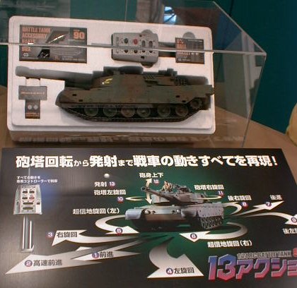 RC戦車ですな。 これ関係の製品は京商のポケット戦車を始め、数社から出ていますが 他社製品には無い「BB弾発射機構」が標準装備されているのが かなり好得点(爆) 来年新春発売予定で予定価格は15000円(予定)なり。 |