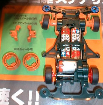 ミニ4駆用ステアリングシステムセット。 ミニ4駆の前輪部にはめ込む事で 見た感じプラパーツのみ(バネ等もなさそう…)で 構成されている所に吃驚。 原理や内部構成等は特許申請中と言う事で 詳しくは教えて貰えませんでしたが 「椅子のキャスターをイメージしてもらえれば…」 とタミヤの解説員は言ってました。 12月発売予定。 |