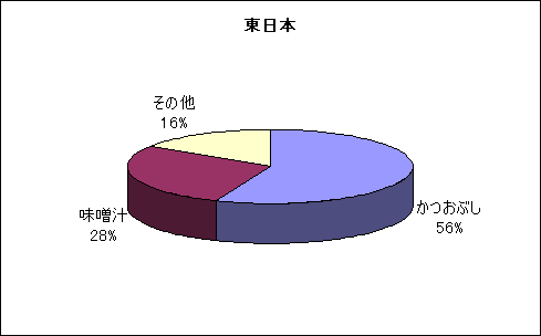 こちらもほぼ予想どおり、「味噌汁派」が過半数を占めつつある。 東西とも、「その他」の存在が気になるが、これについては項を改めてご説明する。 |