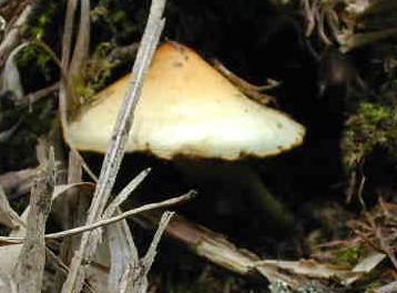 朽ちかけた立木の苔むしたうろに生えていたものです。 傘の大きさは8cm程あったでしょうか。柄が見えませんが、奥手にある幹から生えているためです。 撮影者はクリタケではないかと考えているようです。