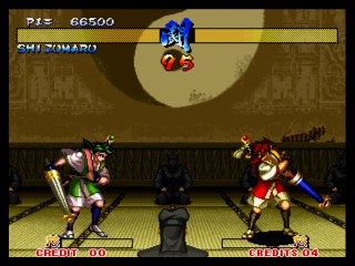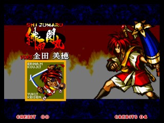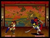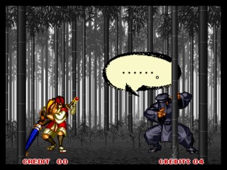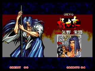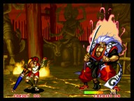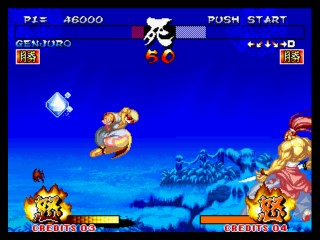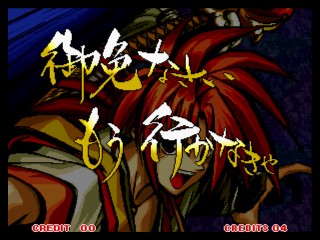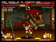今回は前作の「真」とは全く違うシステム。 まず、修羅か羅刹か選ぶ。キャラの必殺技から、性格まで変わってしまうという^^; そして、剣客、剣豪、剣聖から選ぶ。それぞれ、オートガード、普通、ガード不能、となってます。 さらに自分で怒りゲージをためられたりするんですが、不評につき次回作ではなくなってます(笑) あとは極限空間があったり、超必があったり。超必は武器飛ばしに変更されてます。 後ろに黒子いないからね。 で、飛脚もいないけど、爆弾とか、肉とかは、どこからともなく飛んでくるんだね。 誰が投げとるんじゃぃ^^; 投げもなくなっちゃって、ひっぱったり、押したり・・って感じになります。 その隙に連続技入れちゃったりするんです。 あぁ、そうそう、なによりの変更点は強斬りがCボタンひとつで出せるようになったことかな?(笑) 思い出