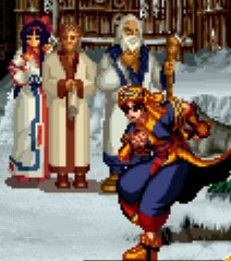 でたっ!前作にひきつづき今回も謎の五つ子、(何番目だろう・・)黒子さんです。 しかし、残念なことに乱入してくれるのはうれしいんですが、 自分と同じ姿に変身しちゃうんです。それはそれで、すごい特技なんですが(汗) でも、前作のように、北斗神拳や、極限流、クラウザーの技、などなどを 使ってくれるかと思ったんですがね、いや残念。 でも、妖しい魅力はそのままですw その筆で描かれたようなドット絵にひかれて、当時、中学校の 連絡帳に模写とかしていたのは内緒です(笑) 緋雨閑丸・・・・・