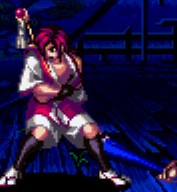 狂気の牙がとびはねる・・・ 彼、すごくキれてます^^; 声優はなんと、草薙京と同じ、野中さん。 う〜ん、声優さんってすごい♪ 彼は鬼に恋人を殺されました。彼女の名前は篝火(かがりび)。 そして、自分自身も鬼に殺されました。 が、彼の怨念は常世から現世の鬼に向けられる。 ただひたすら復讐をなしとげるために・・。 すっごく悲しいストーリーですねTT 戦闘タイプはトリッキー。相手を惑わすのが得意です。 影にひそんだり、鎌を飛ばしたり、とにかくいろんな攻撃方法があって、 あきませんね☆幻十郎か、彼か、閑丸か、覇王丸の4択で遊んでます、いつも♪
