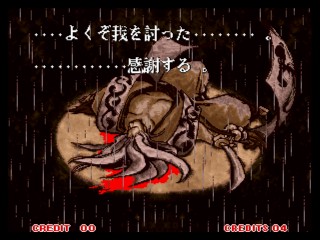 この斬紅郎も好きですねぇ。サムスピの中では一番硬派な感じがします。 ストーリーも渋いですし。エンディングもすごく簡素でいい味だしてます。 和狆の書いた一枚絵と文章のみの構成。しかも音楽がかっこよすぎ! ゲーム自体のおもしろさとしては、次回作が一番好きなんですが、 狂死郎の強さに挑むために、たまにPLAYしたりもしますw 強いんですよ・・狂死郎が^^; 正月はサムスピ三昧が幸せな一時な、SNK狂いの管理人ルリがお届けいたしました♪ 拙い文章、申し訳ございませんでした^^