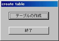 プログラムを実行すると、'db.mdb' が作成されます。 「テーブルの作成」ボタンをクリックして、CREATE TABLE を実行して下さい。 MS アクセスでファイルを開き、テーブルが正しく作られたか確認しましょう。 すでに 'db.mdb' があるときには、エラーで終了します。