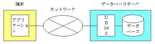 データベースシステムは、たくさんの人たちでデータを共有できるように、次のようにクライアントサーバの構成をしています。