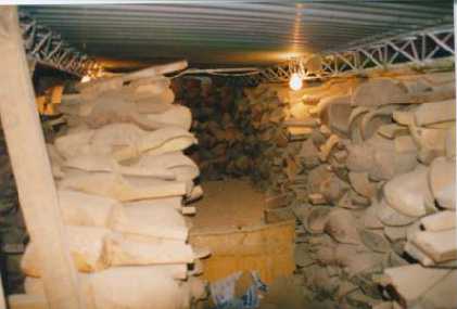 ガンボアの工房の内部。 原木から加工されそれらしい形になったチャランゴは