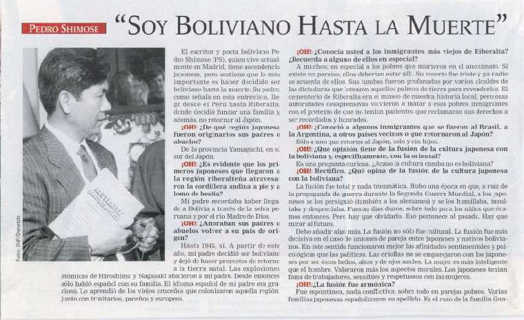 「私は死ぬまでボリビア人です」と答えたペドロ下瀬の記事。