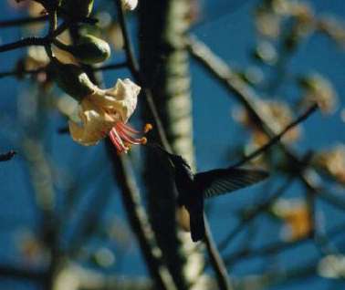 花の蜜を吸っている瞬間はほんの数秒間であり、とても臆病な鳥であるため人が