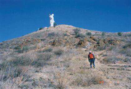 写真 : コチャバンバのシンボル、キリスト像へ登る彼女