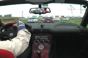 1コーナーで3位のロードスターとサイド・バイ・サイド。